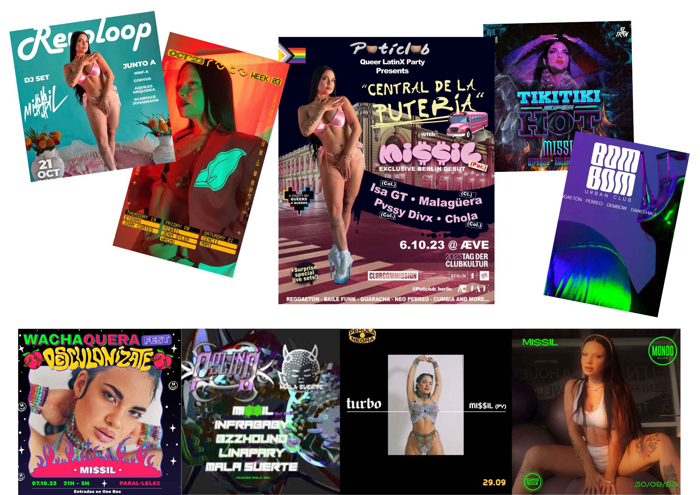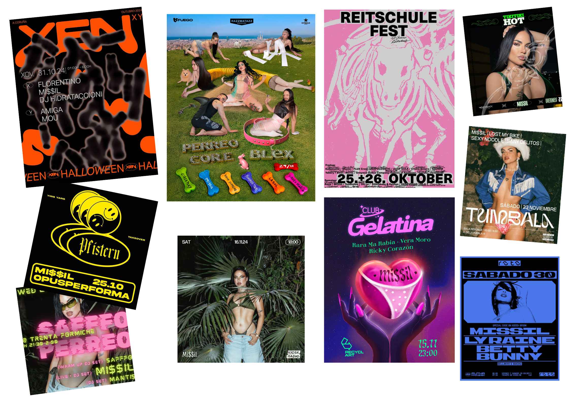Missil despliega una energía arrolladora: sus sets son una invitación al baile, a la catarsis colectiva y a la libertad. En sus sets fusiona ritmos latinos, electrónica, funk carioca y beats urbanos, creando una experiencia sonora vibrante que conecta con públicos de todas partes. Ha pisado escenarios de festivales internacionales como EDC México, Flow Fest, Asuncionico, GRL PWR, Lollapalooza y CTM Berlín, además de girar por América Latina y Europa.